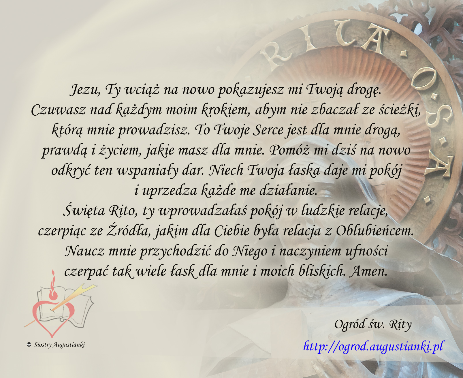 Droga prawda życie ?Święta Rito prowadź nas ?za wstawiennictwem św. Augustyna proszę o wzajemne porozumienie